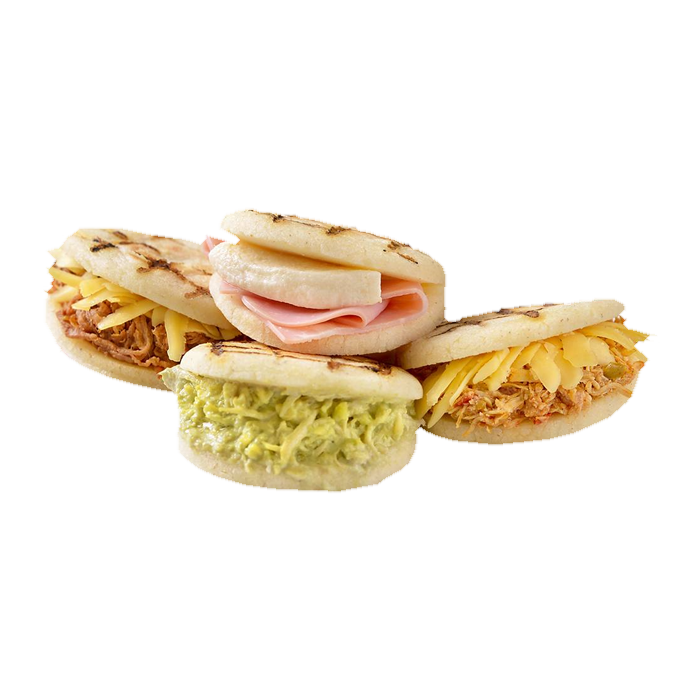 ¡Sumérgete en el sabor de Venezuela con nuestra selección de arepas! Desde las clásicas rellenas de queso y jamón, hasta combinaciones audaces con carne, pollo y vegetales frescos. Perfectas para cualquier momento del día, nuestras arepas son una explosión de sabor en cada bocado.